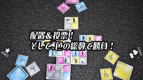 ゲームの流れはシンプルで、簡単にお伝えすると、≪カード配布≫→≪カード配置≫→≪相手の色を投票≫、の3つの流れで1ゲームとなります。
