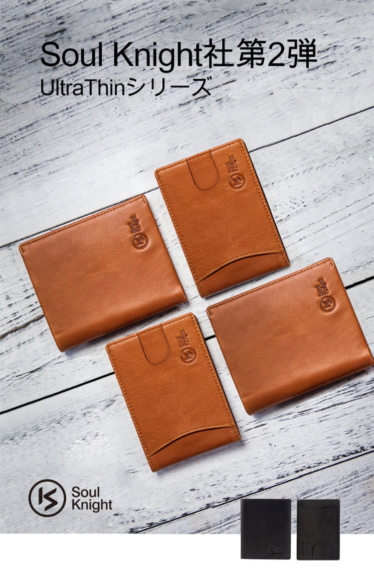 現在、クレジットカードや交通系ICカードで大半の支払いが済んでしまう世の中。もちろん、求められるお財布の形も時代とともに進化していきます。この度、Soul Knight社はカード決済を中心とした現代のお財布事情を考え、作り出した『UltraThinシリーズ』は理想的なお財布と言えるコンパクトな薄型財布として、今までの財布の概念を覆してくれます。