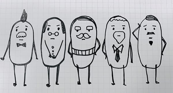 実は…、このプロジェクトを開始した2019年5月28日現在、「汁のゲーム(仮)」のゲームデザインやグラフィックなどは100%中の10%ぐらい、話がすすんでいる状態です。下は、キャラクターのラフ案その1。これからもどんどん進化する予定です。