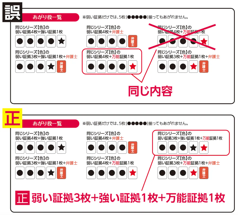 ・証拠カードの他に弁護士、探偵などのカードも使えること