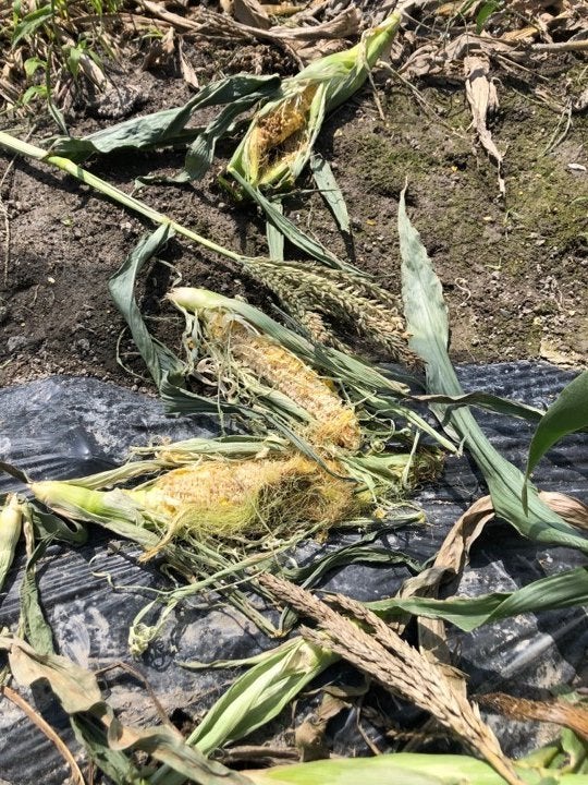 アライグマは雑食で木登りも得意。防除柵を悠々と超え、畑の作物、木の上の果樹、人家に侵入し糞尿で家を傷めます。