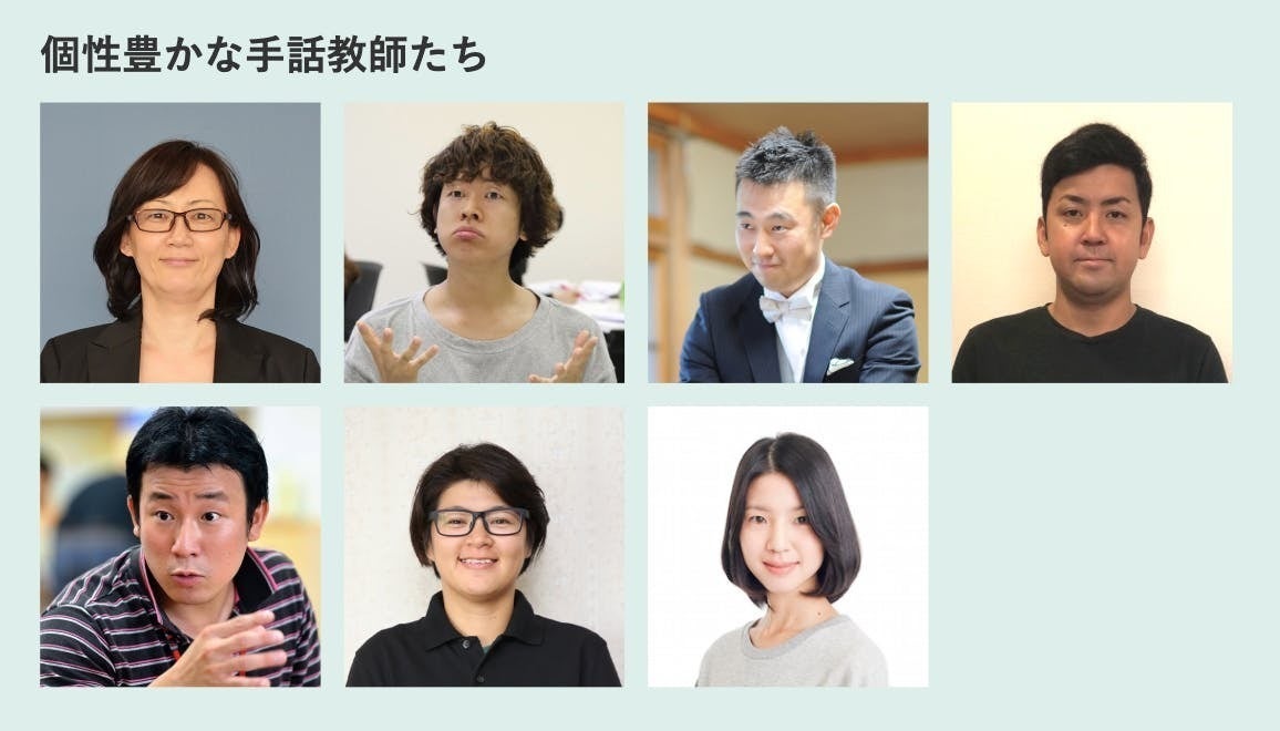 サインアイオーの先生は全員がろう者で日本手話を第一言語としており、『NPO法人手話教師センター』に属する教師たちです。彼らからナチュラルアプローチ教授法による、自然な手話学習が受けられます。
