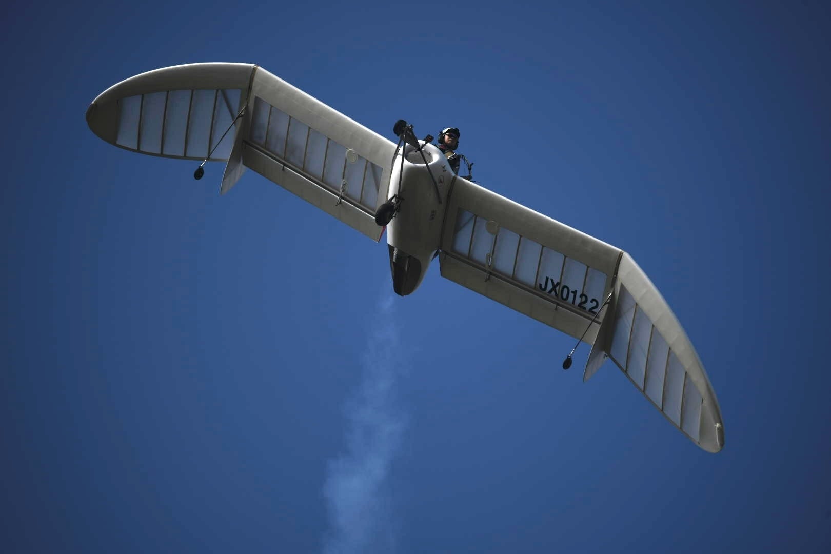 こちらはプロフェッショナルの飛行機制作会社「オリンポス」による設計・製造を経て、一歩ずつステップを踏んで2013年には初飛行、そして2016年には場周飛行を達成しました。最初は「そんなことできっこない」と思われていたのですが、地道に一歩ずつ完成度をあげ、また多くの人に手伝っていただきながら試験飛行を重ね、こんな感じで飛ぶようになりました。(動画は2018年冬のフライトです)
