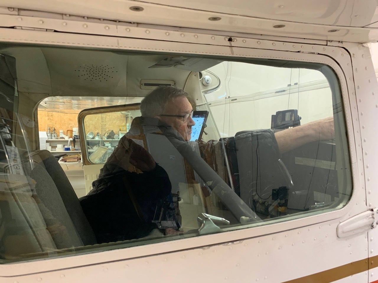チノ空港のハンガーにて、機体の展示。