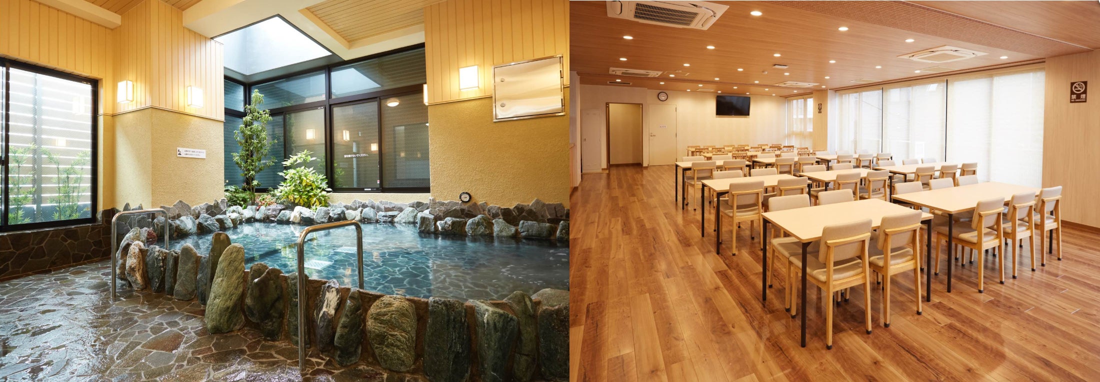 都内最大級の銭湯。イベントは、2F大広間にて実施致します。(写真右)