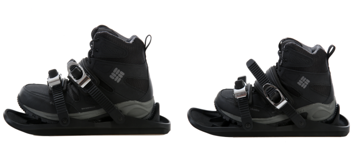 スノーフィートは、耐久性が高い軽量のガラス繊維でできています。また金属製のスキーエッジで簡単に停止することができます。ヒールは減速に使え、調節可能なビンディングはあなたがどんなウィンターシューズを履いていても取り付けられるよう設計しました。
