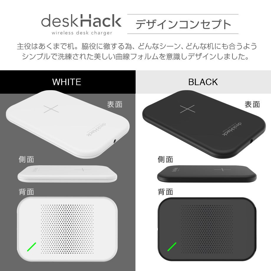 家に帰ってふと座った時、テレビを見ている時、パソコンを触っている時、スマホを机に置くだけで自動的に充電されるそんな夢のような充電器 『deskHack』が登場しました。