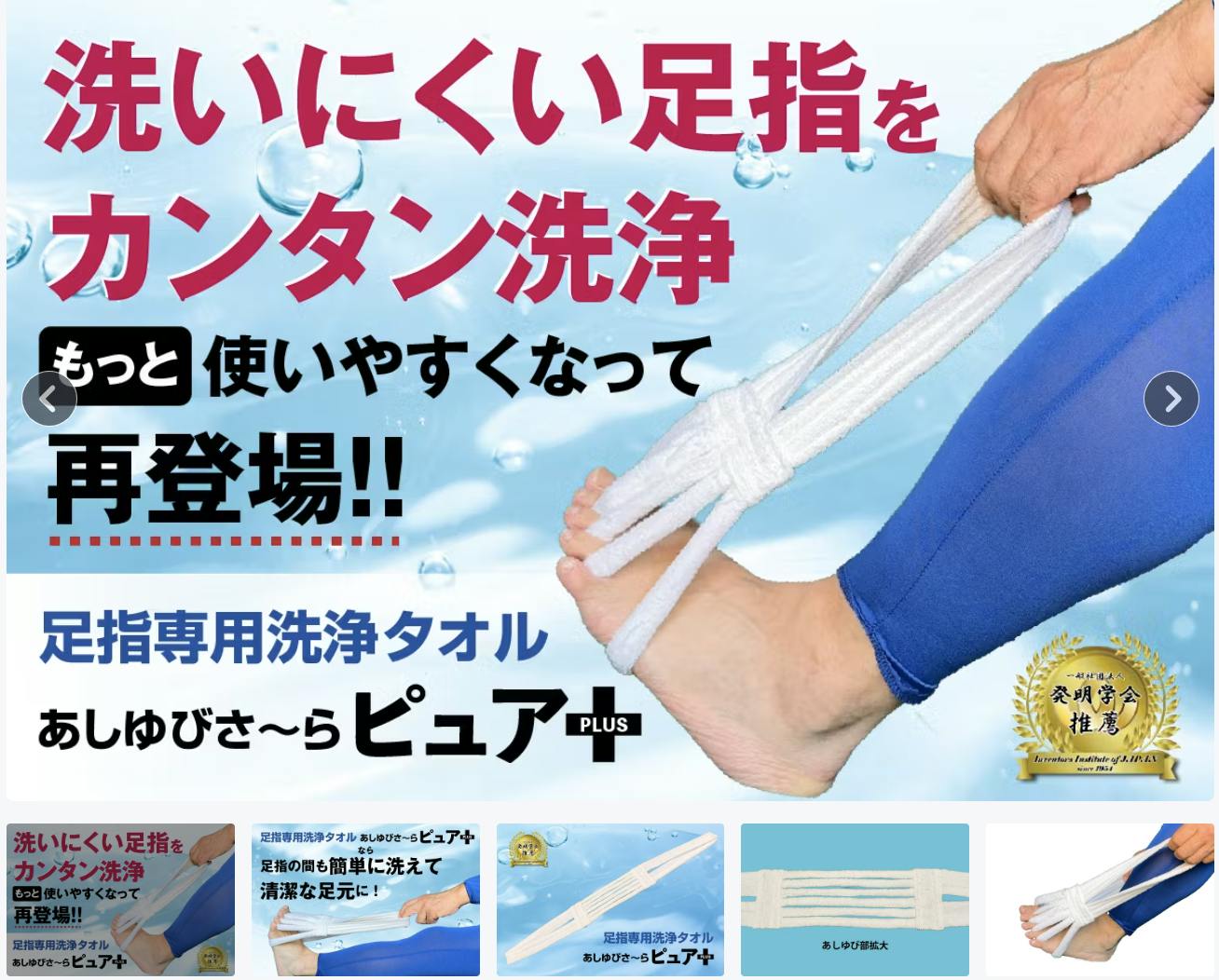 改良版登場します!「あしゆびさ〜らピュア+」(足指洗浄専用タオル)