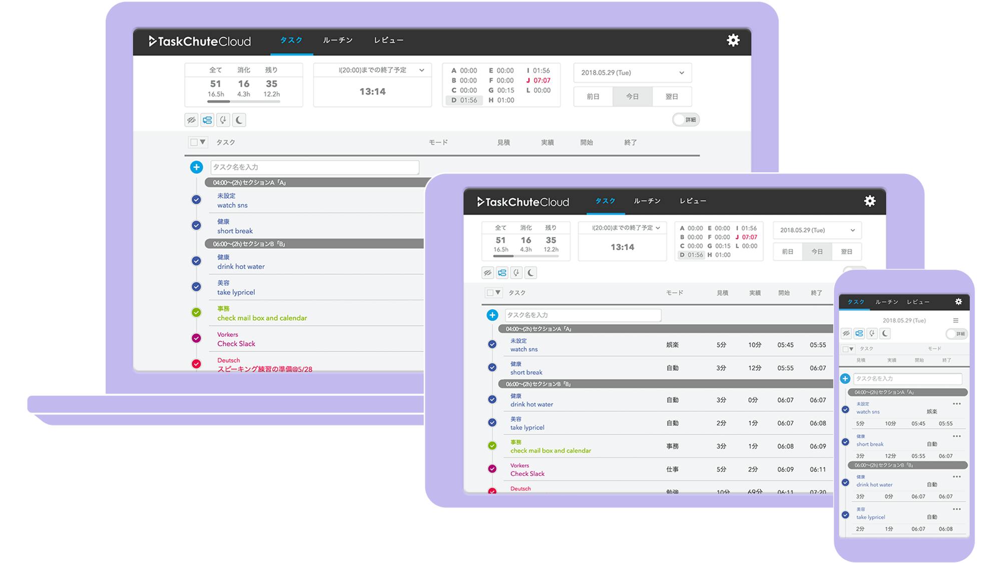 文字通り、朝から晩まで1日中TaskChute Cloudと共に過ごしています。