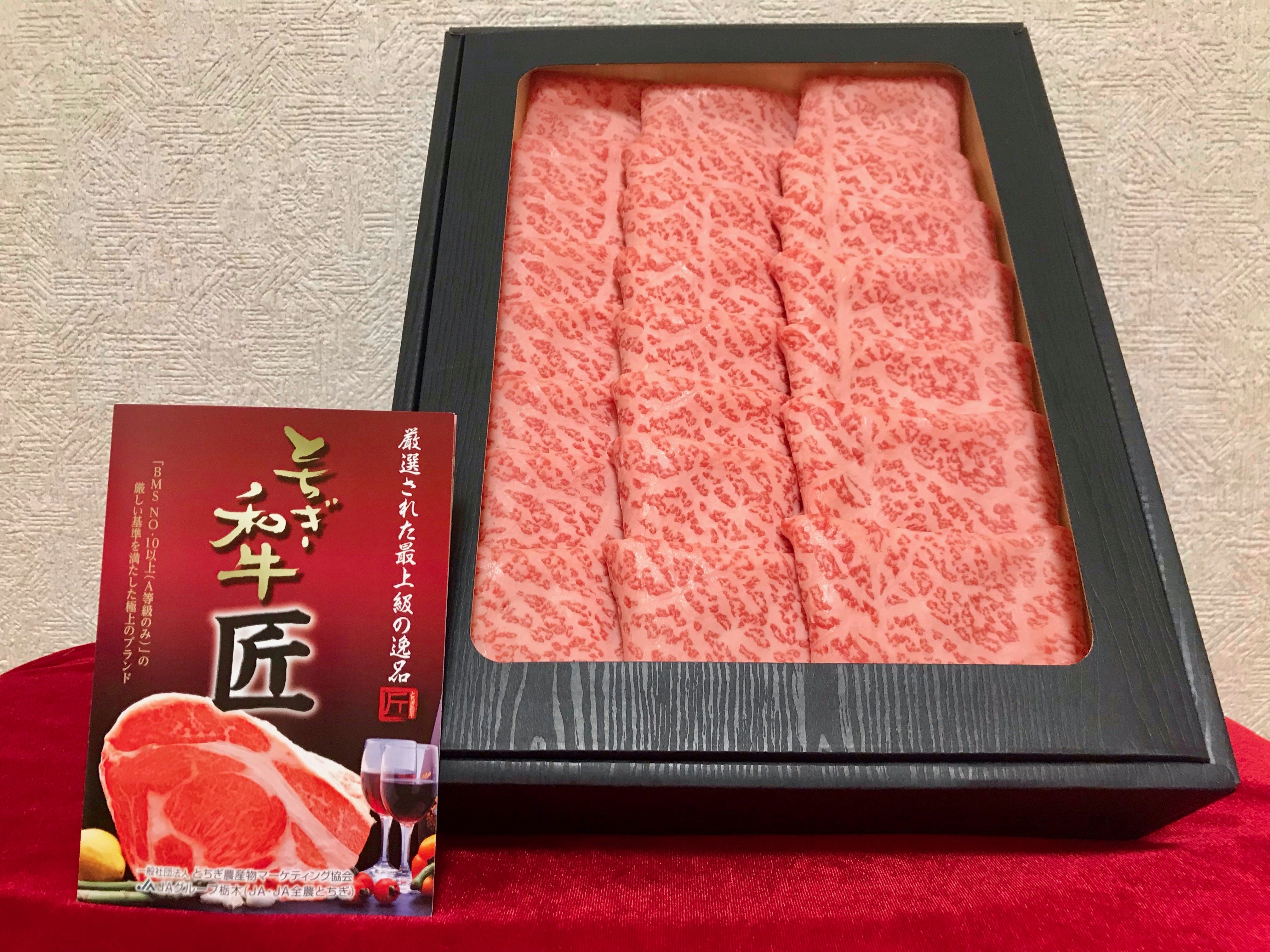 参戦メンバーの地元の大田原の牧場で育った「とちぎ和牛」A5等級の中でも最上位格付けBMS10-12の「匠」をお届けします!(しゃぶしゃぶ・すき焼き用)