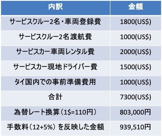 各員、自己資金を投入しての参戦となりますが新マシンの導入や従来は帯同しなかったサポート部隊の追加などにより下記の費用が不足しております。