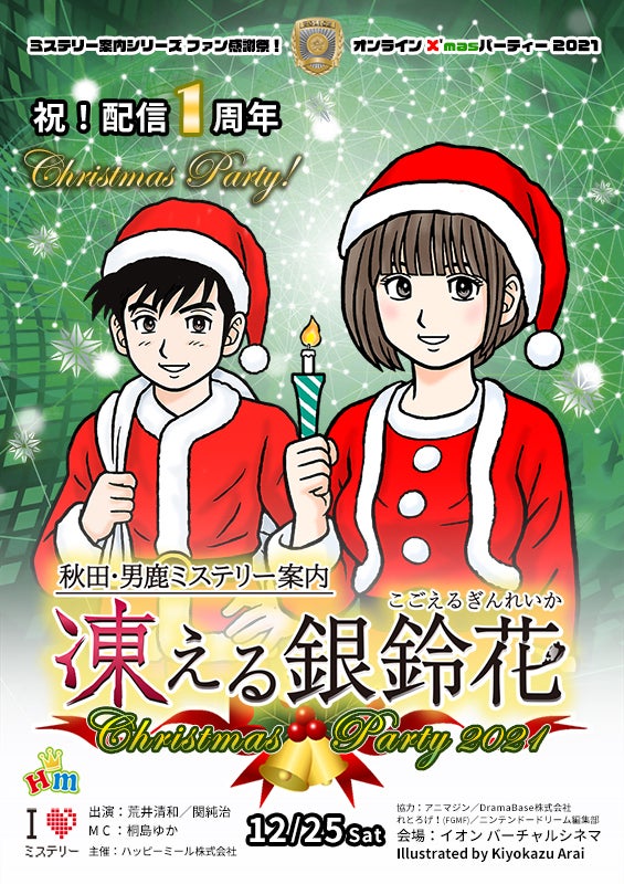 2021/12/15 20:09本プロジェクトのご支援と応援をありがとうございます。この度、『ミステリー案内』シリーズ『凍える銀鈴花』配信一周年記念&シリーズファン感謝祭をイオンシネマ バーチャルシネマにてオンラインイベントを開催する事をお知らせいたします。■イベント概要バーチャルシネマ内に用意されたシアター(3D空間)の中をアバターキャラで移動し上映される複数のコンテンツを自由に視聴するオンラインイベントです。バーチャル空間内には4つのスクリーンが用意され、その中で他の参加ユーザーとチャットで交流する事も可能です。各スクリーンでは『凍える銀鈴花』の制作秘話やシリーズ第三弾(タイトル未定)、実写スピンオフ作品の制作状況等をトークする生放送、歴代テーマソングプロモーションビデオ、ゲーム実況動画等を上映します。>>>イベントのお申込みはこちら!<<<【出演者】:荒井清和(漫画家、キャラクターデザイン)、関 純治(ハッピーミール株式会社社長)【 MC 】:桐島 ゆか(声優)【協 力】:アニマジン、FGMF、DramaBase株式会社、ニンテンドードリーム編集部開催日 :2021年12月25日(土) 13:00~15:00頃 (開場12:40~)会 場 :バーチャルシネマ参加費用:無 料 (先着100名様)*イオンバーチャルシネマの会員登録(登録無料)が必要です。*イオンバーチャルシネマが提供するソフトが動作するPC又はスマートフォンが必要です。必ず各機種の必要スペックをご確認及びテスト接続後にお申し込み下さい。また、同日の夜にはファンと制作者がオンライン上で交流する「第16回ミステリーネタバレ雑談会」も実施致します。ミーティング、チャットサービス『ZOOM』の使用したオンラインイベントを開催致します。このイベントはミステリー案内シリーズをはじめ、それにまつわる雑談をネタバレ制限なしファンと制作者が語り合う会となります。ご参加を希望する方は下記フォームから申し込みください。沢山の方々のご参加をお待ちしております!>>>ネタバレ会のお申し込みはこちら!<<<それでは、皆さん会場でお会い(?)しましょう!2021年12月15日 ハッピーミール株式会社 代表取締役社長 関純治 もっと見る