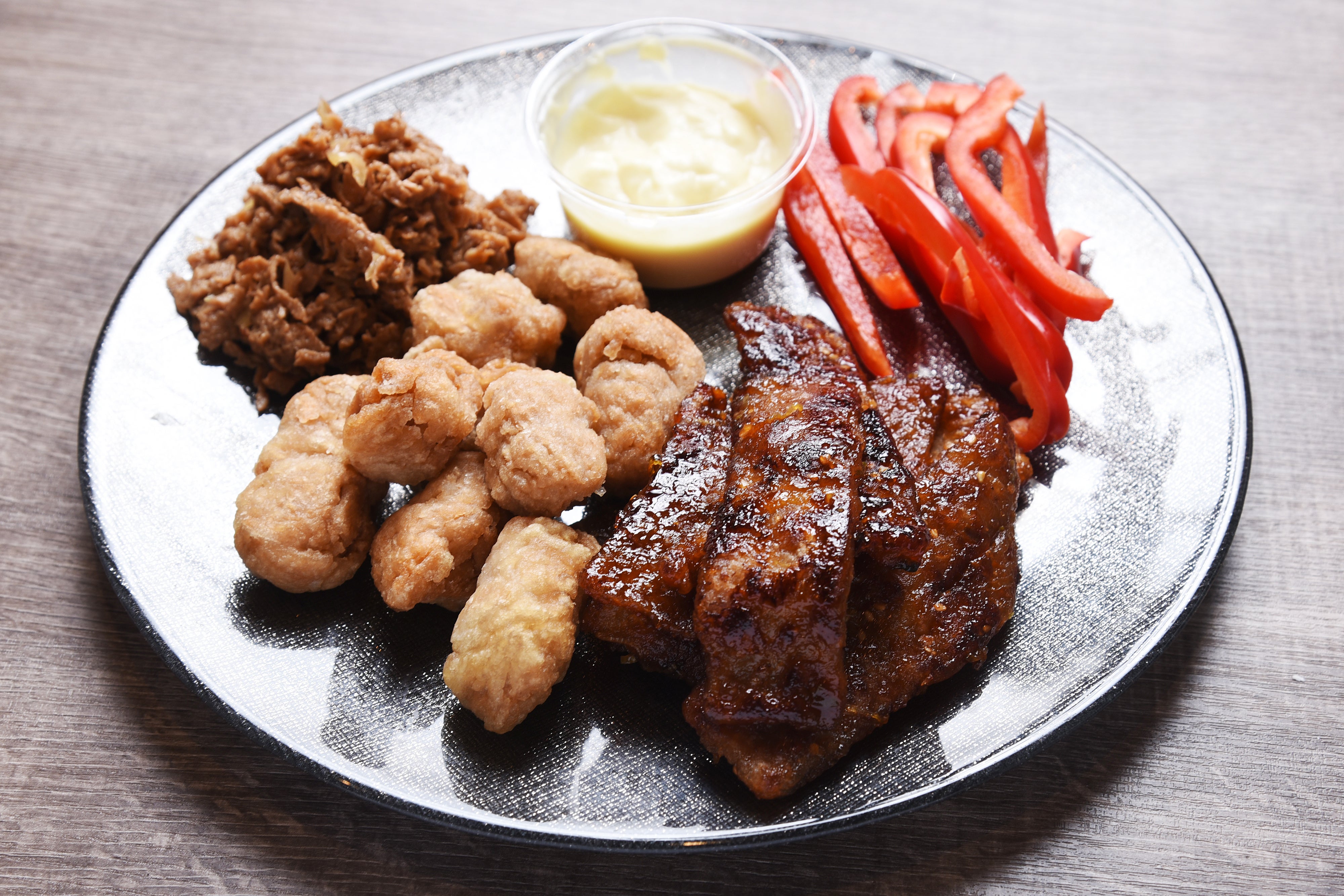 まだ絶賛開発中ではありますが、今回"肉じゃないヴィーガン対応の焼肉弁当"に入れる予定の具材は以下になります。