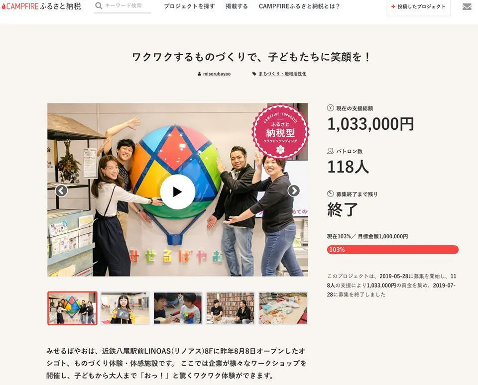 <八尾市HP:ワクワクするものづくりで、子どもたちに笑顔を!「ガバメントクラウドファンディング」>