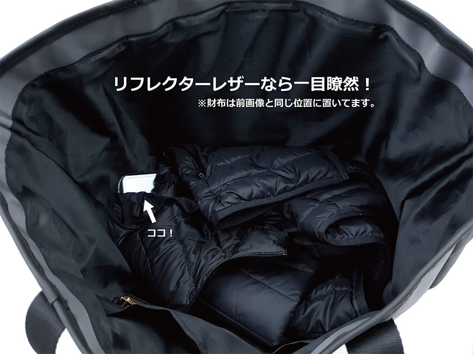 小さいながらにリフレクターレザーの輝きで「高級感」があり、また荷物の中に埋もれてしまっても見つけやすい「存在感」もあります。