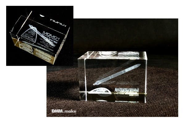 MOMO3号機の機体を再現した、スタッフ、関係者限定の限定記念3Dレーザークリスタルを送付します。