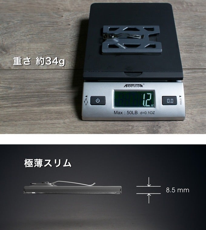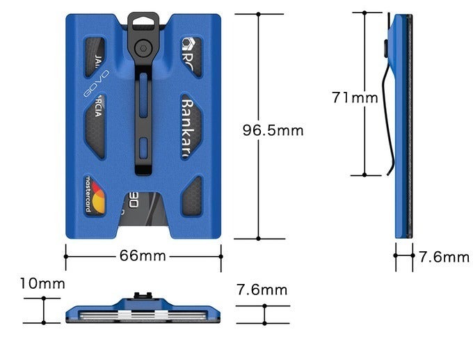 「GOVO」 IDホルダー&ウォレットは、どのような環境下でも耐えられるように設計されました。ポリカーボネートの使用により重量を増やさずに耐久性を高め、金属製のクリップはマンガン鋼とホルダーによって補強されています。最大のポイントとして、ケースに収納したカードは、その枚数に応じてグリップ力が調整される金属バネシステムによって固定されます。
