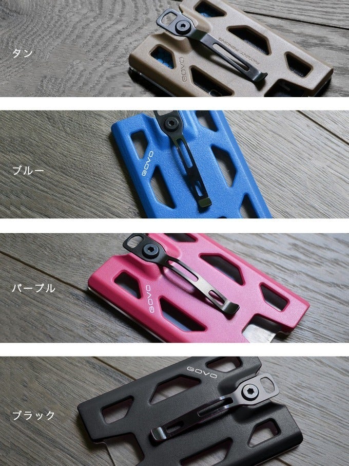 「GOVO」 IDホルダー&ウォレットには、タン、ブルー、パープル、ブラックの4種類のカラーがあります。