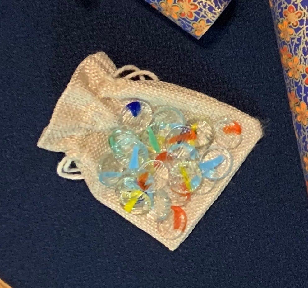 お)このきれいなおはじきですね!