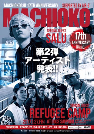 • 【 先行前売券発売開始&第2弾アーティスト発表 】-街おこし17周年― 本日2016年12月12日~1月10日迄一般前売り券 3500円⇒先行前売り券 2500円(限定100枚)発売を開始いたします。希望の方は、お早めにお買い求めください。 2017年1月、17年周年の記念イベントを@DUCE SAPPOROで開催が決定し、豪華第1弾アーティストに続いて、第2弾アーティスト発表。 SKY-HIとのコラボアルバム『Say Hello to My Minions』が大注目の北海道で活動の経歴を持ち、街おこしにも遊びに来てくれていた1987年生まれと同世代 SALU(サル)。 ▼SALU / Nipponia Nippon 更に、今月21日 NEW ALBUM『 Raise the Flag 』の発売を控えた、日本のシーンにおいて最注目ラップグループのひとつRefugeecamp(レフジーキャンプ)も北海道を代表して参加。MC松島・FRAME・SALUと同グループでの経歴もあるというから、面白いことになりそう。 ▼Refugeecamp - 4seasons 先行発売が、断然お得なので【販売期間 2016年12月12日~2017年1月10日】この期間内で、限定100枚となっておりますので、お早めにお買い求めください。 タイトル:街おこし17周年―1987-日時:2017年1月27日(金)OPEN:20:00~場所:DUCE SAPPORO(札幌市中央区南8条西4丁目422オリエンタルホテルB1F)WEB: http://duce.asia/料金:前売り券 3500円  当日4500円 先行前売り券 2500円(2016年12月12日~2017年1月10日) ※入場に際に、別途2DRINKS購入していただきます。※未成年者の飲酒・喫煙を禁止しています。※再入場の際は、1DRINK購入していただきます。 ローソンチケット Lコード 12000 出演SPECIAL GUEST:C.O.S.AJAGGLAJAZZY MINORRefugeecamp ※第2弾アーティストSALU ※第2弾アーティスト紅桜 問い合わせ011-252-9890(街おこしproject)contact@machiokoshi.info#ナマラヤバイ #hiphop#rap #link #madeinhokkaido もっと見る
