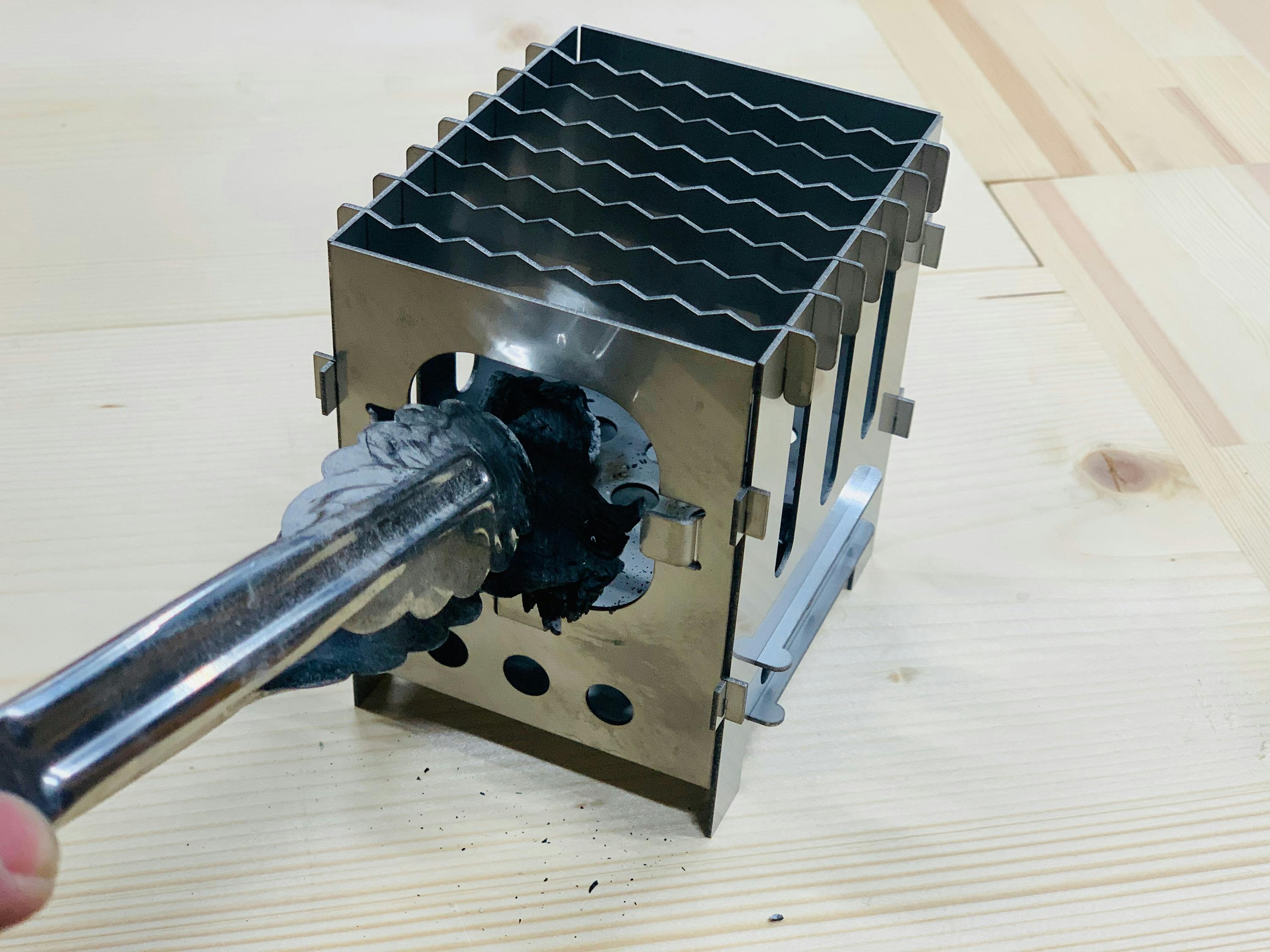 「ペッタンコンロ」は、ソロキャンプ初心者の方にぴったりな、工具なしで簡単に組み立てできるおひとりさま用ミニコンロ。