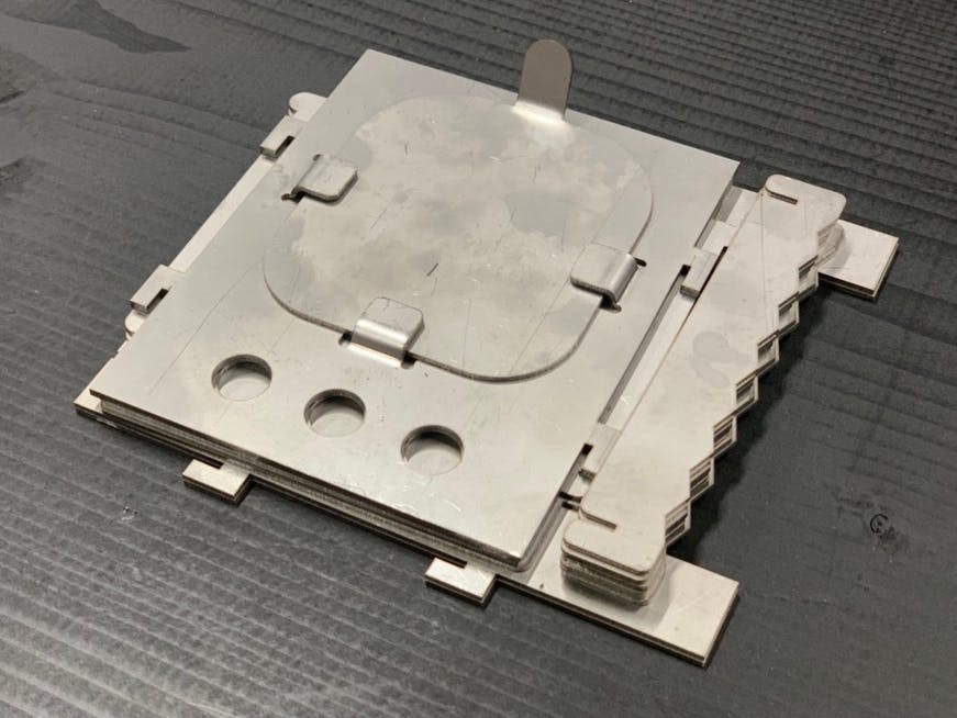 ⑧厚さ1.2ミリのステンレス板14枚。重さはわずか540グラム。