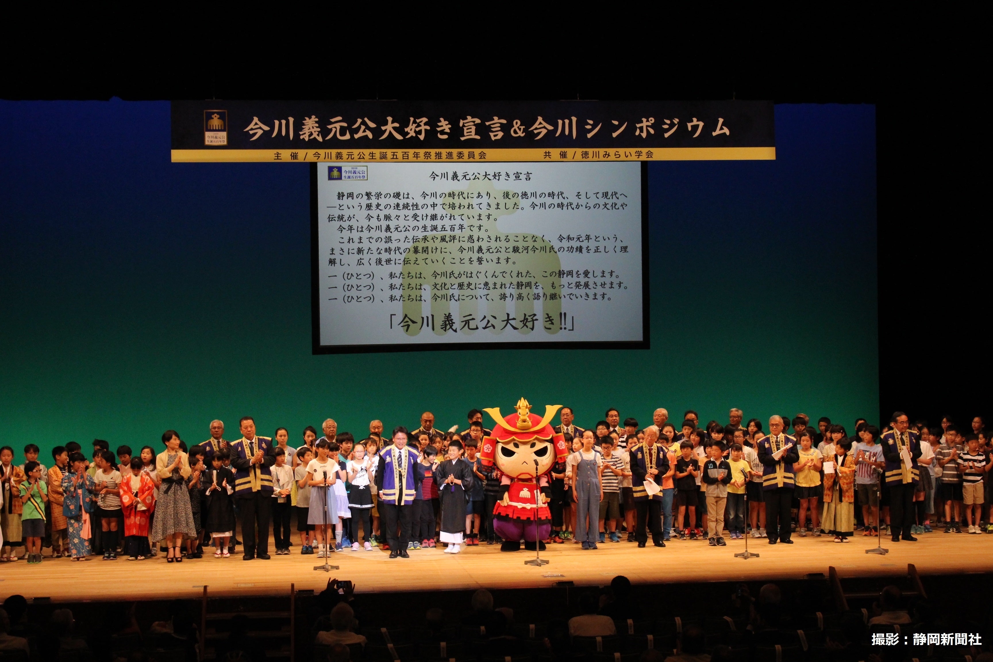 フィナーレは、今川義元公大好き宣言です。未来を担う小学生らとともに今川氏が育んでくれた静岡を愛し、更なる発展をさせ、義元公の功績を後世に誇り高く語り継いでいくことを誓い、会場の皆様方と「今川義元公大好き!」と声高らかに宣言しました。