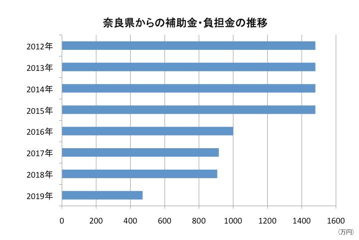 『はならぁと』の予算のほとんどはこれまで奈良県からの負担金を活動の原資としていました。しかし、文化イベントの増加により分配額が減少し、現在の結果となっています。