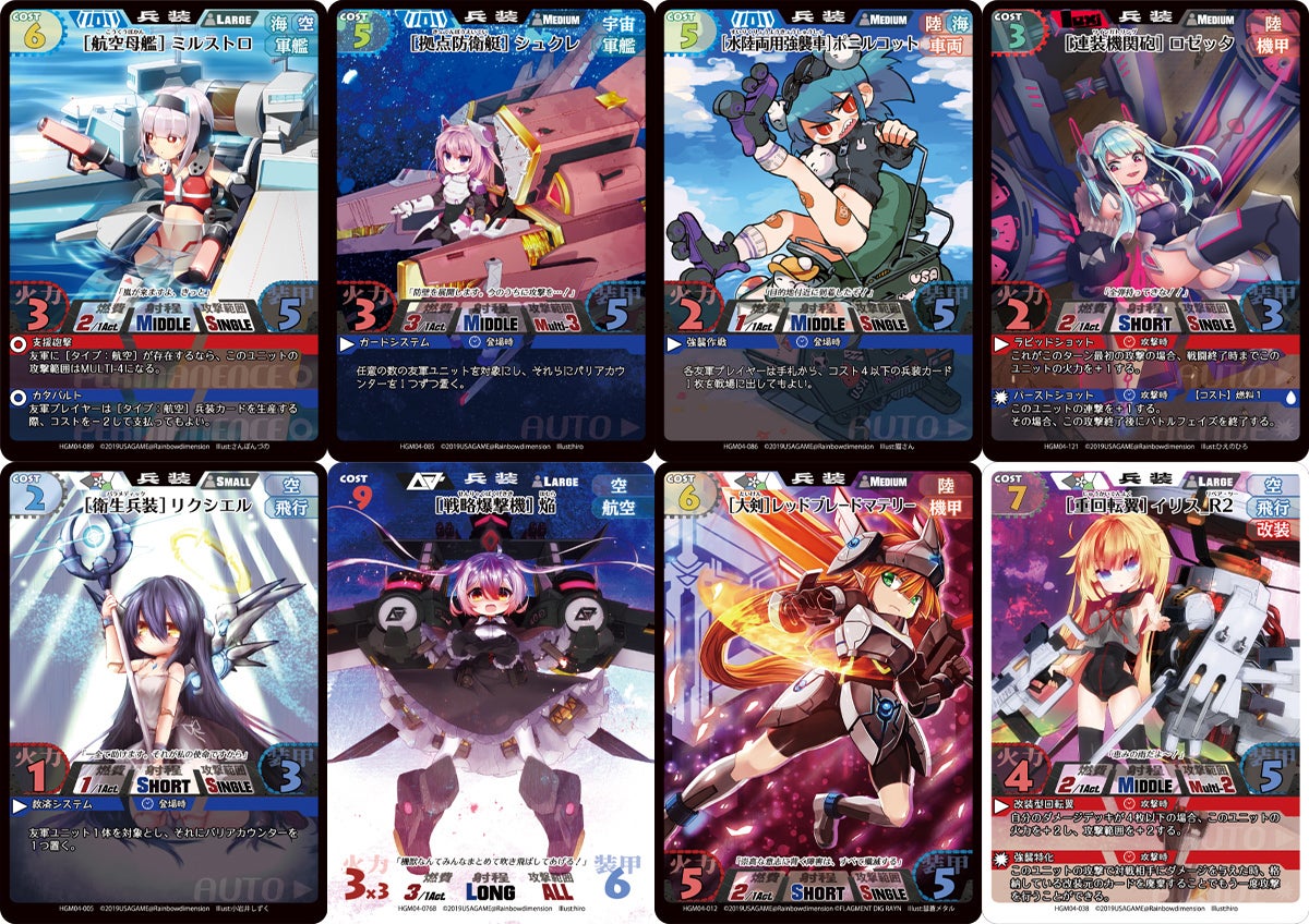「HAGMI!」はメカ少女たちと共に崩壊した世界で戦う、ポストアポカリプス世界観を持つな対戦型のリビングカードゲームです。いずれも「単体のセットで十分に遊べる」ことを目標に制作されています。