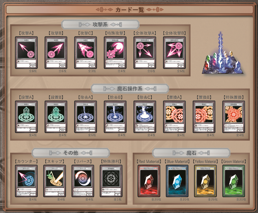 一部の複雑なカードは「上級者ルール」としてゲーム開始時に取り除いておくことも可能とします。