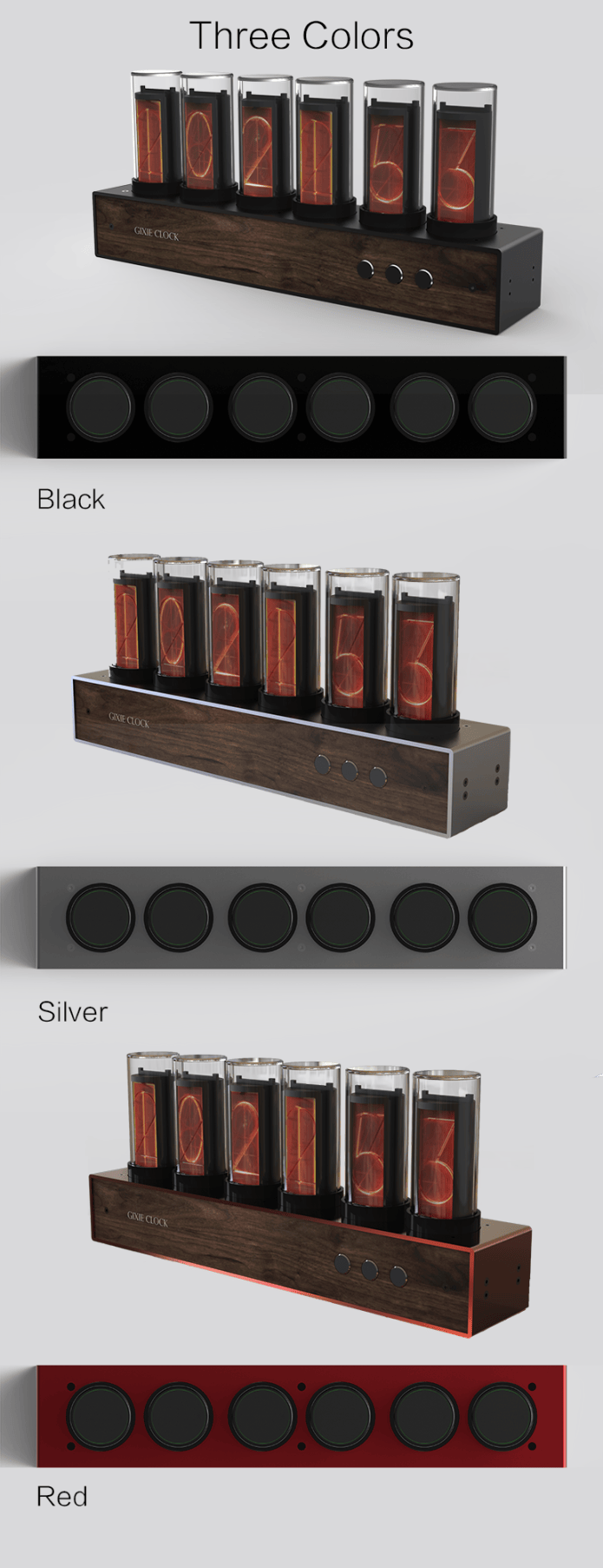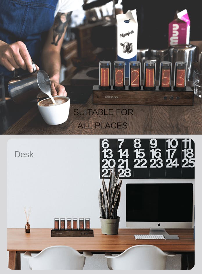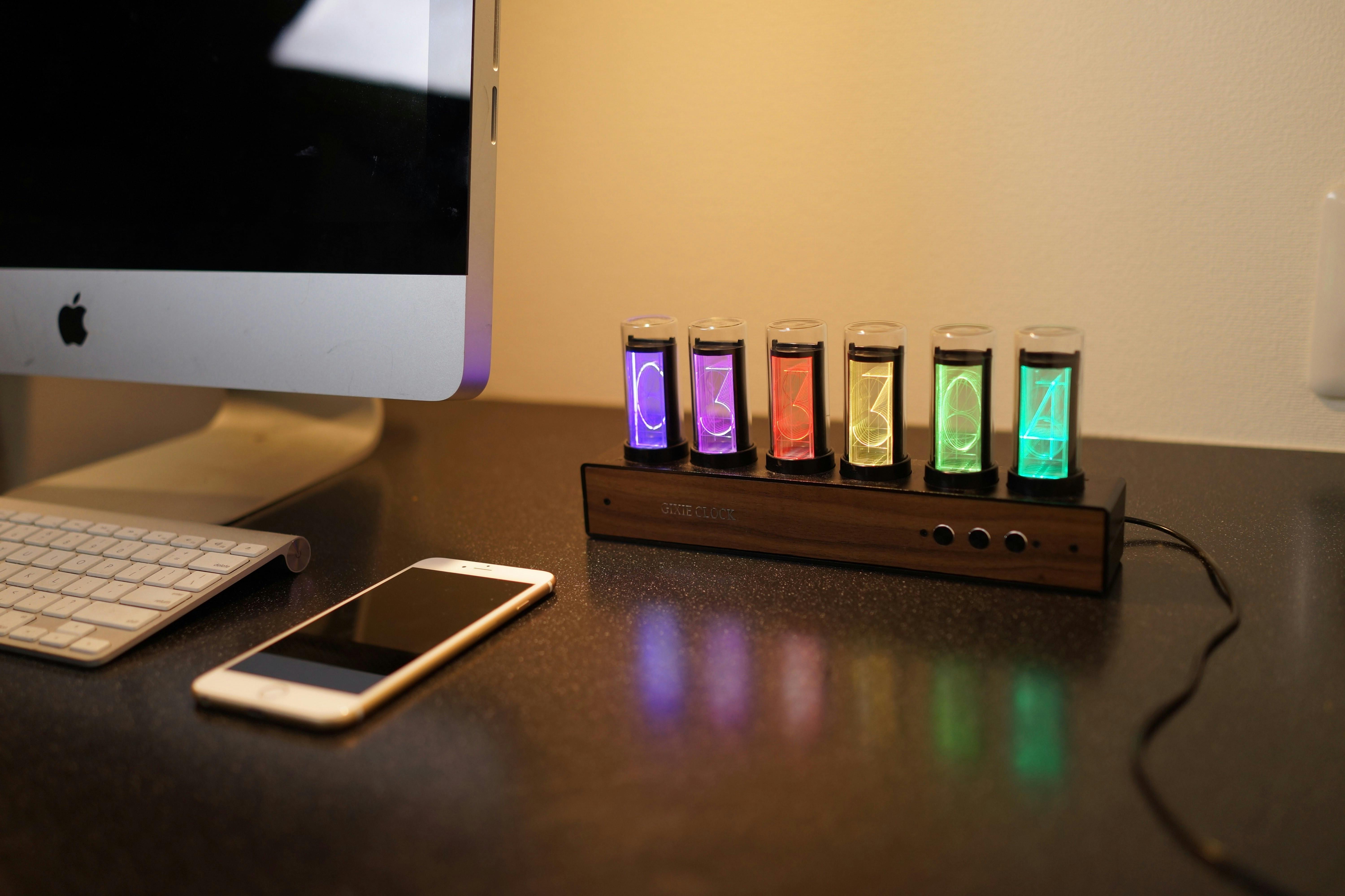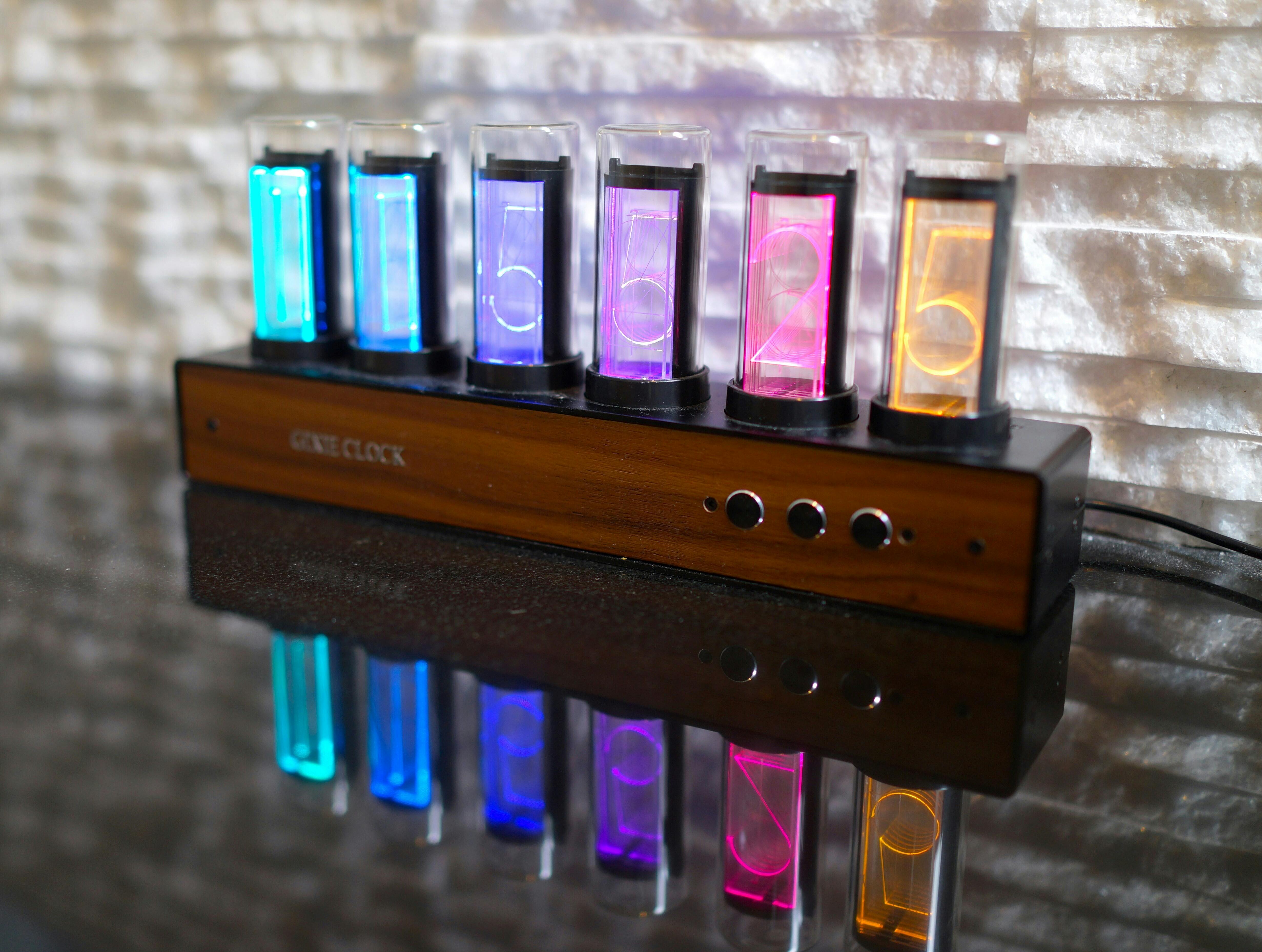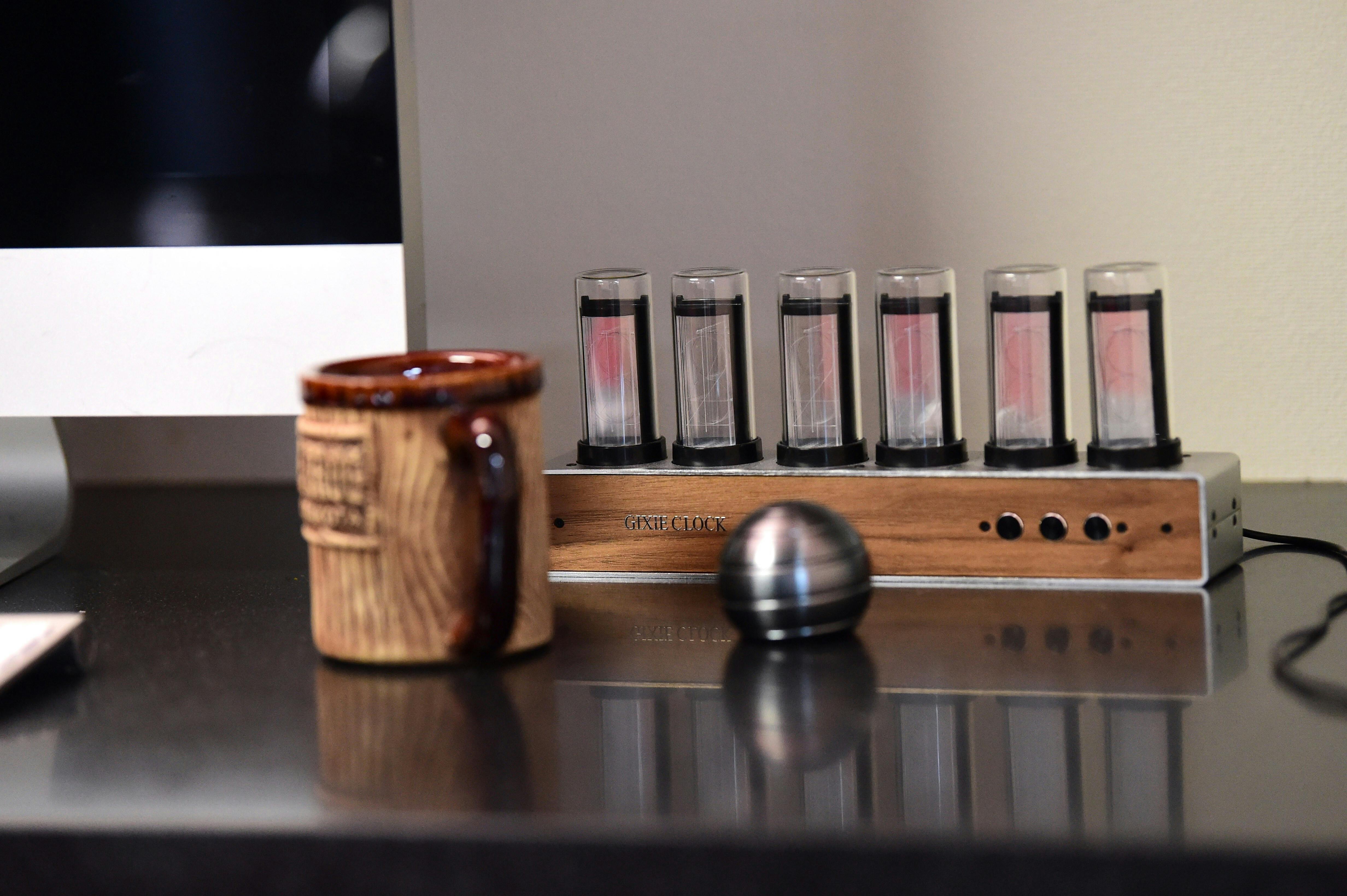 Gixie Clock(ギクシークロック)はレトロなニキシー管ディスプレイの美しさをLED仕様で再現したレトロモダンな置時計です。
