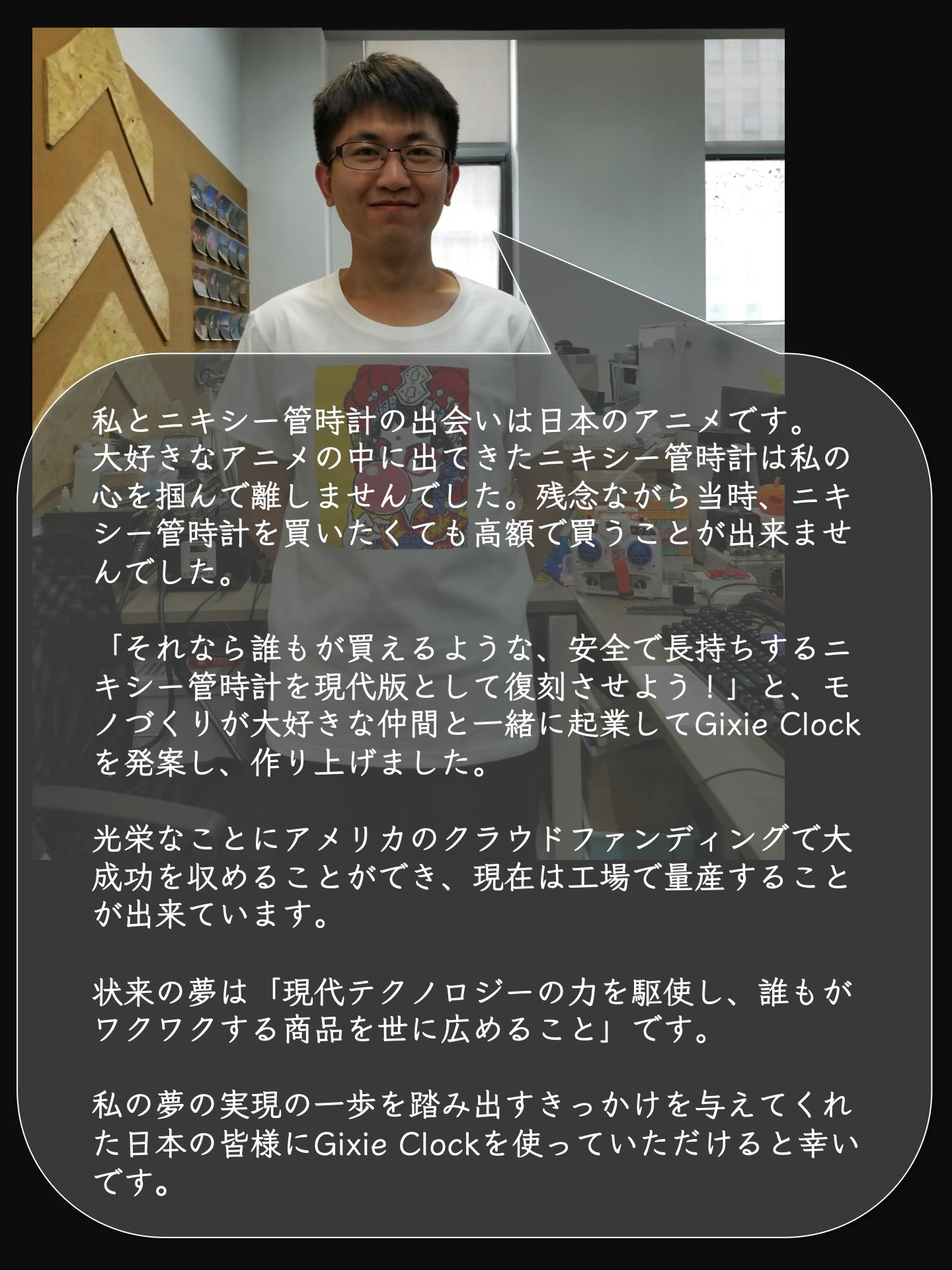 米国クラウドファンディングで既に1600万円以上の支援を集め、「現代技術でニキシー管時計が安全かつエコに再現されている!」と大絶賛を受けました。