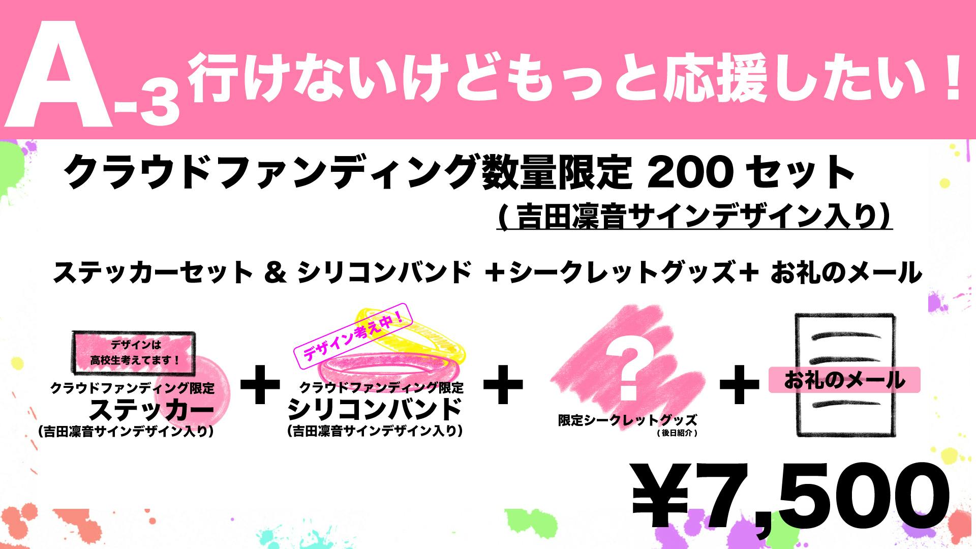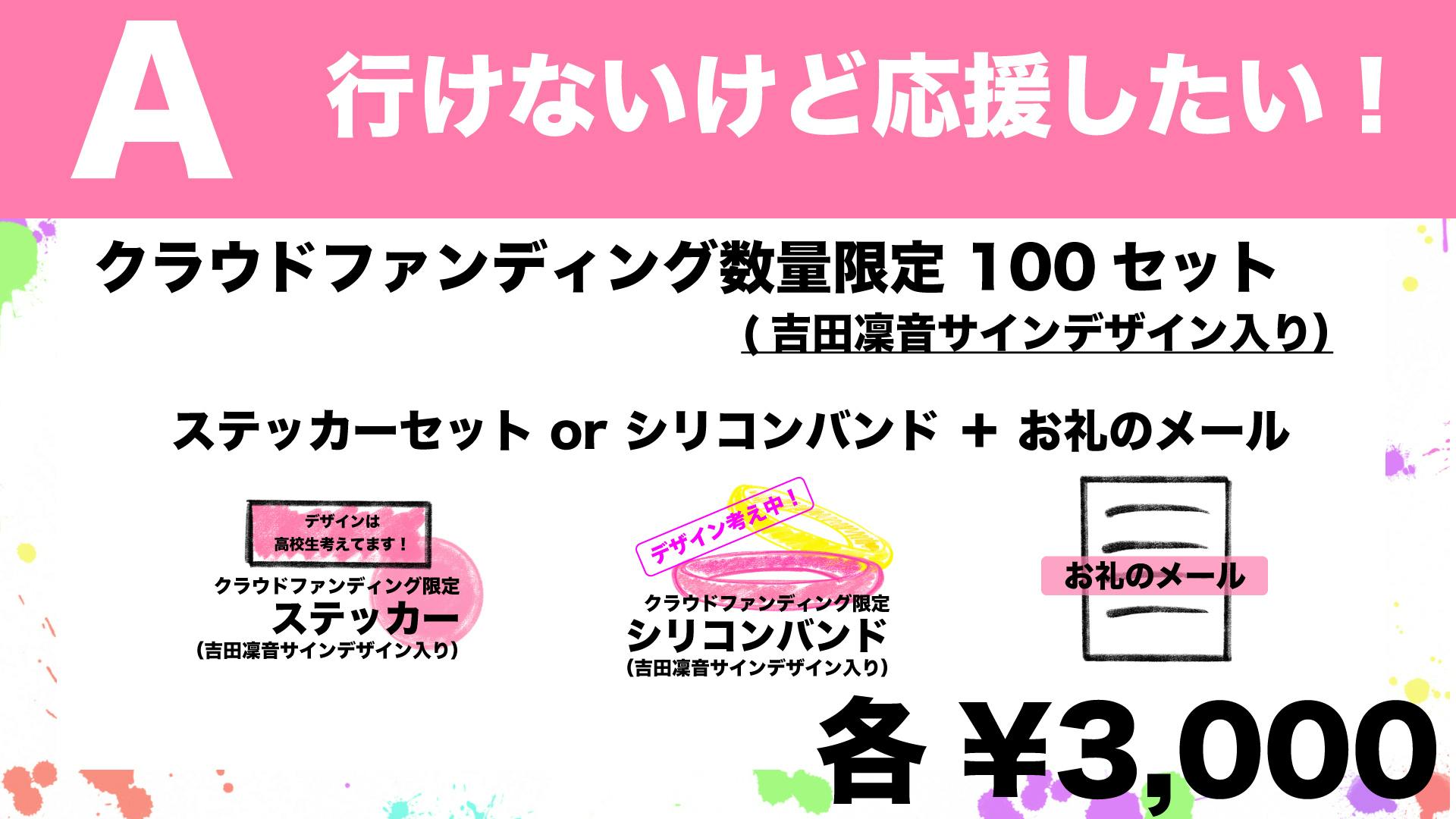 ・・・クラウドファンディング限定デザインで、吉田凜音さんから頂いたサインデザイン入りのステッカーまたはシリコンバンド +お礼のメール (限定100)