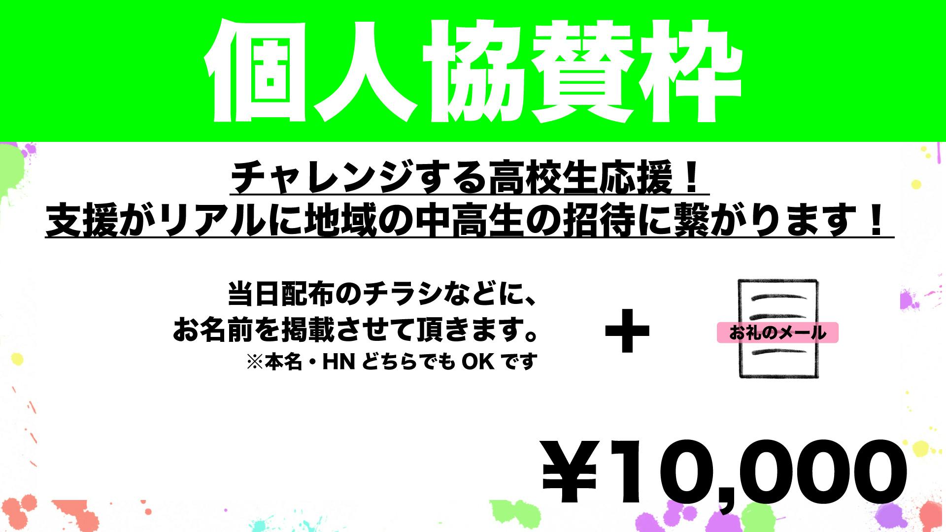 ご支援の全てが中高生へのリアルな支援(招待)に繋がります。ぜひご支援ください!(当日配布のチラシなどにお名前を掲載させて頂きます)