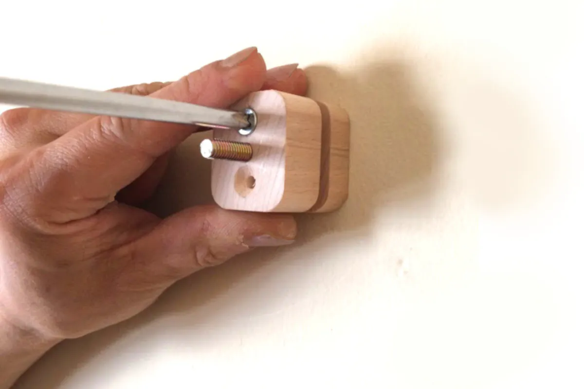 取り付け方法は、まずベースとなる支柱を、壁に付属のネジで取り付けてください。