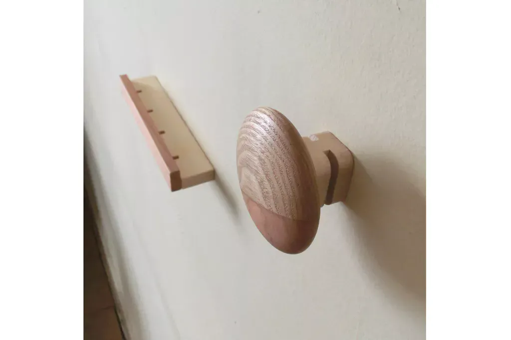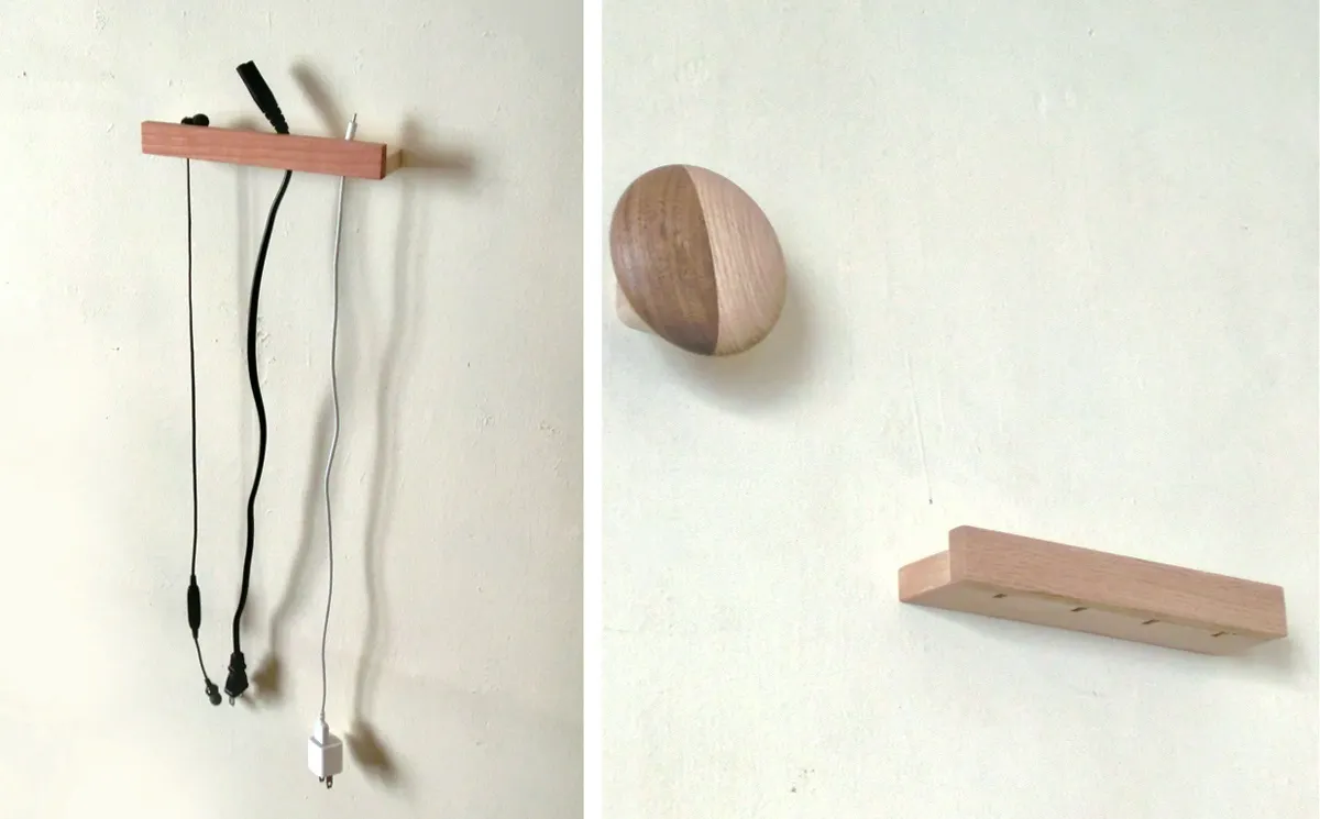 小さい材を組み合わせて丸いフックと棒状のフックの2タイプを考案しました。