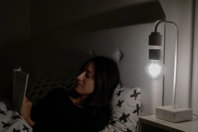 電球が宙に浮いたまま点灯する卓上ランプ「Levia」とは