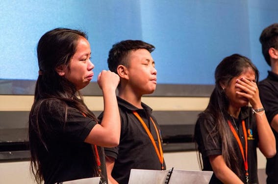 *日本公演でのスピーチ。感極まって子どもたちは涙が止まりませんでした。