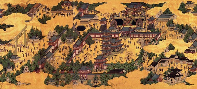 ※摂津国四天王寺全景。遣隋使・遣唐使貿易の本拠地。下は現在の四天王寺