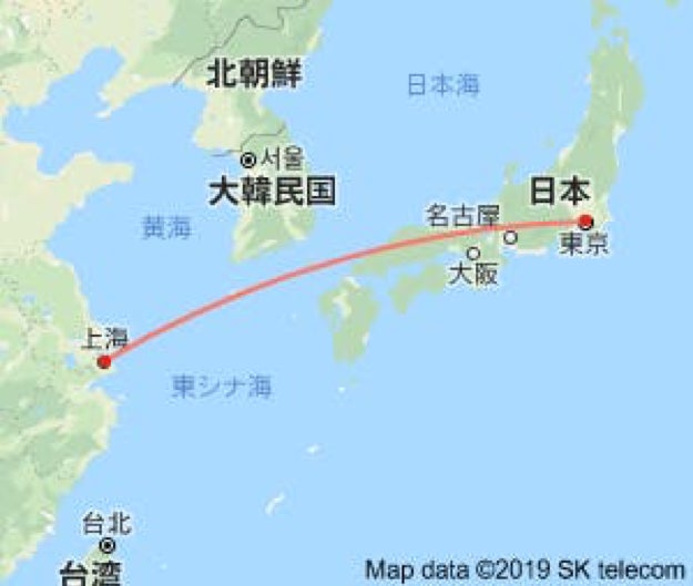 東京〜上海までの飛行時間はたった2時間半で、