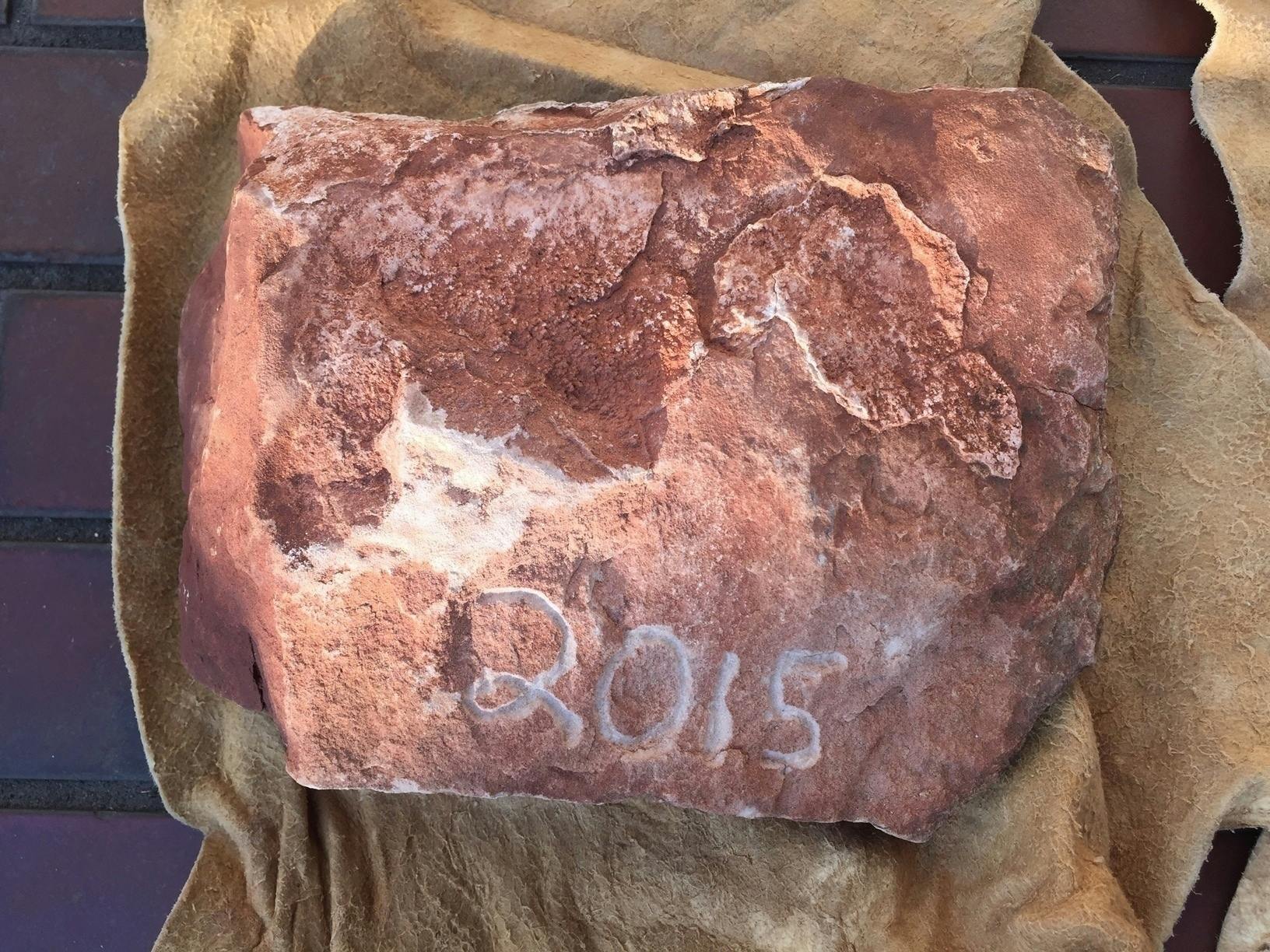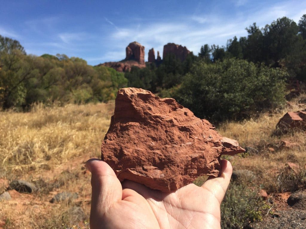 真っ赤にそびえ立つ岩山と同じ赤茶色の、堆積岩状態の石ですが、長老アダム・イエローバード氏が直々に採掘し、セドナの聖なる河、オーククリークに24時間浸し、キャセドラルロックを仰ぐ頂でセドナの太陽を24時間浴びたのち、日本の皆様へお届けします。