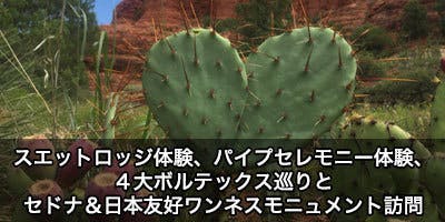 ラコタ族の浄化の儀式の一種『パイプセレモニー』を体験します。また、『4大ボルテックスをすべて巡る旅』『セドナ&日本友好ワンネスモニュメント訪問』を行います。