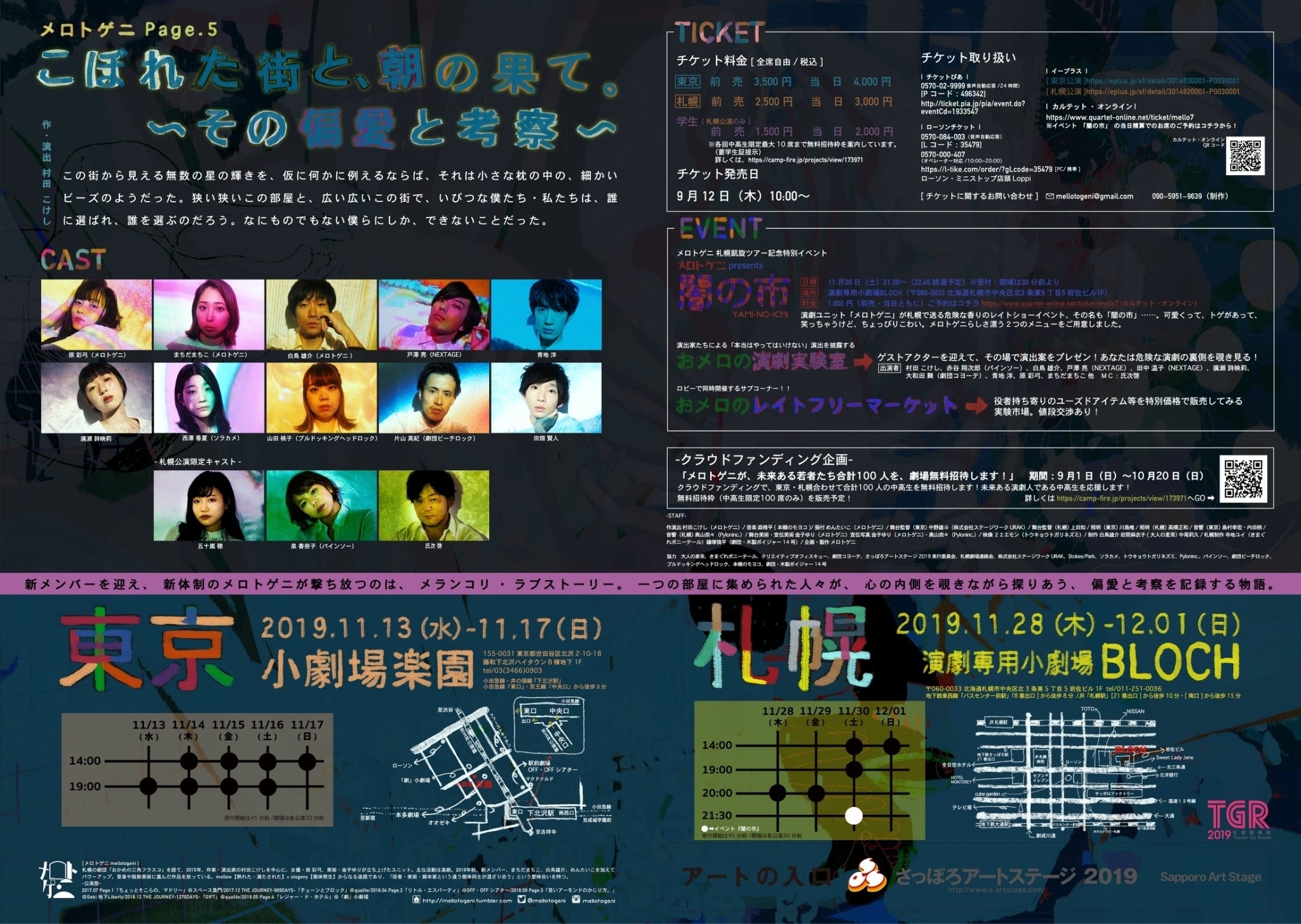 東京在住!札幌演劇界出身の演劇ユニット「メロトゲニ」は演劇文化発展の「これから」を担う中高生を無料でご招待したい!!買いたくても買えなかった決して安くないチケット。行きたくても行けなかった公演。(我々も経験者です、泣)若い力と出会うため、支援者の皆様に素敵なリターンをご用意しました。