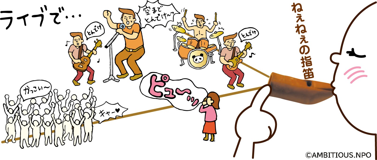 コンサート会場で拍手喝さいと、沖縄指笛でピュー!して盛り上がりましょう。