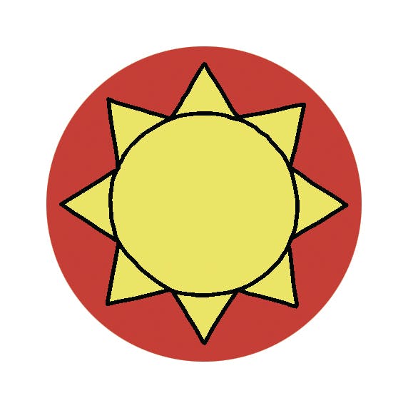 太陽マークとフロシャイムマークを手書きしました。