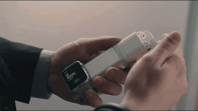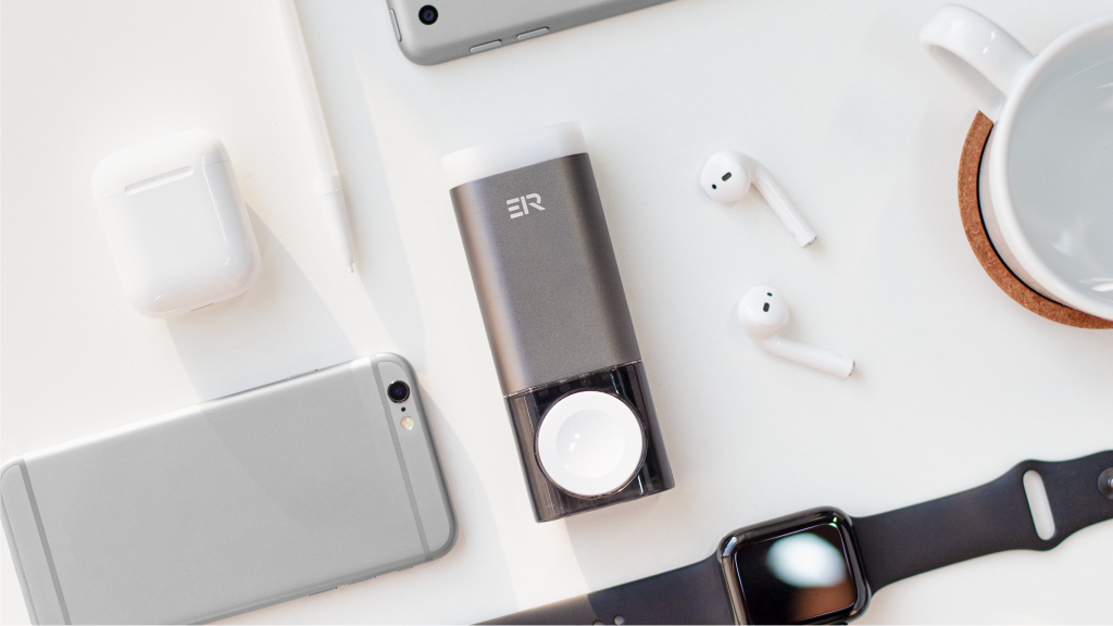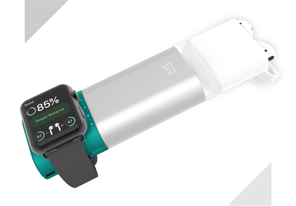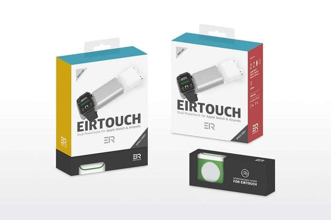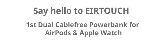 そんな現状を打破すべく私たちはがつくったのが、AirPodsとApple Watch専用のワイヤレスバッテリー「EIRTOUCH」です。軽量コンパクトでどこへでも携帯できるうえ、ケーブルなしで両デバイスを同時に充電することができます。