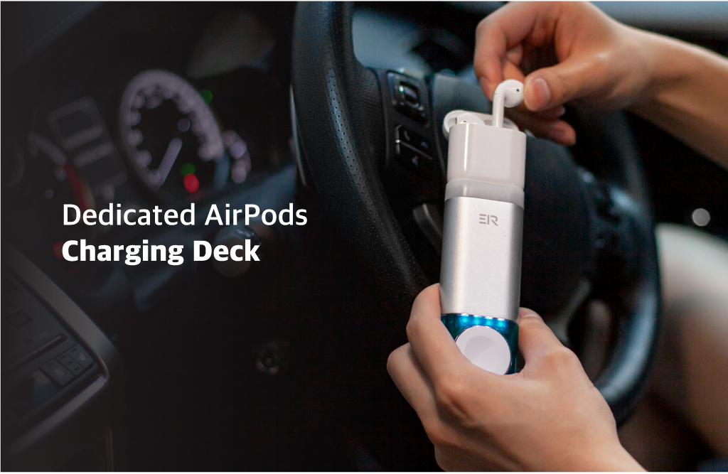 EIRTOUCHは、 AirPodsのために特別にデザインされたバッテリーです。Airpodsのケースと同じく、EIRTOUCHの充電デッキにAirpodsをぴったりと収めることができます。AirPodsを充電デッキに入れて充電すれば、AirPodsがバッグのなかで跳ね回ってキズがついたり、ケーブルが外れて充電が止まってしまう心配はありません。