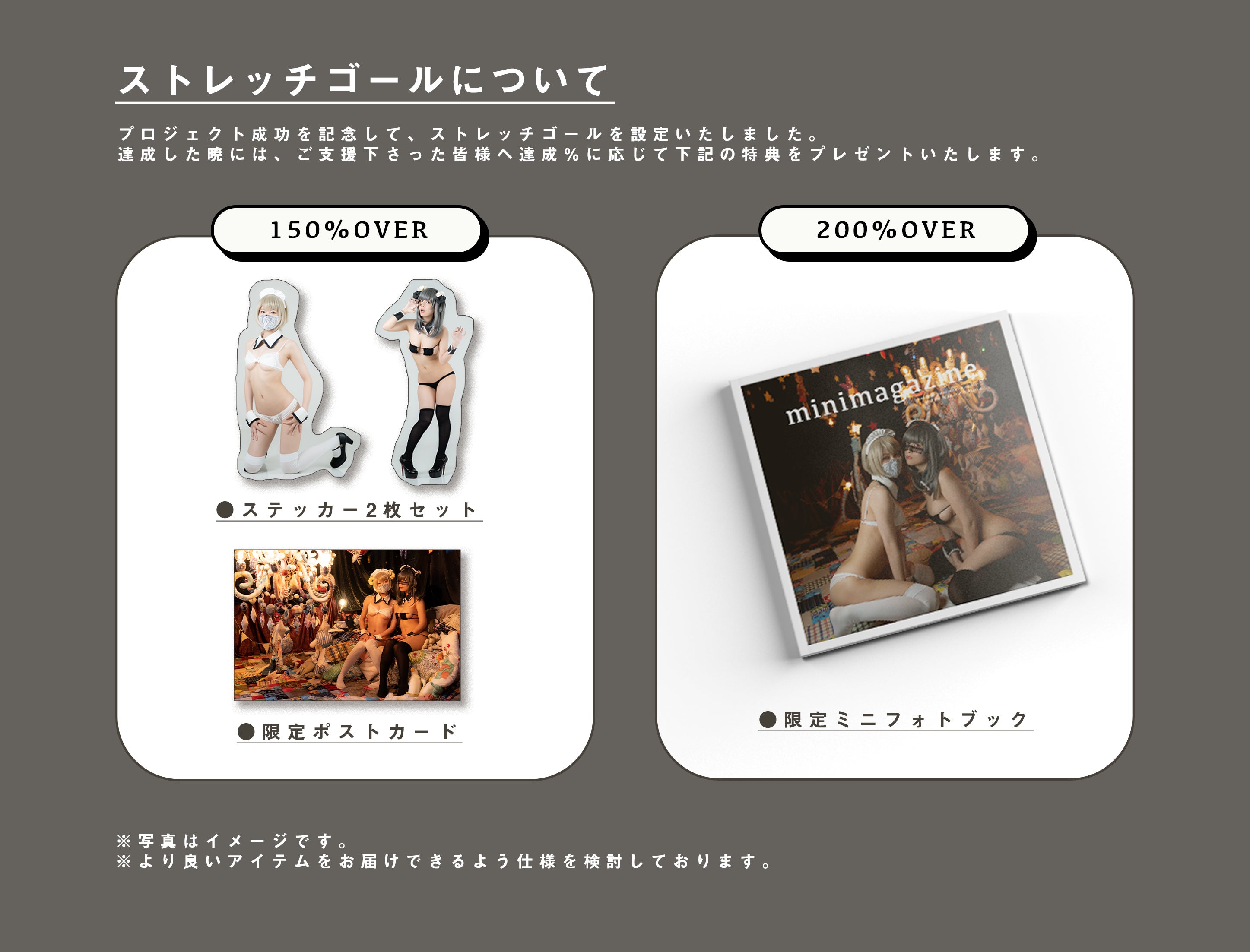 プロジェクトをより楽しんでいただけるよう、ストレッチゴールを設定いたしまして、150%,200%を目指します!