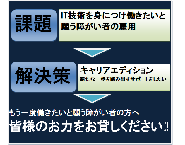 今回のクラウドファンディングですが、障害により、希望する職種や雇用形態での就労が難しく、社会の中で居場所がないまま、辛い思いをしている方々がいます。しかし、わたしたちが親身に向き合っていくうちに、ふとしたきっかけが活かされ粘り強さを発揮し行動できるようになった若者も見てきました。障害の受容が難しく既存の就労支援の枠に入れない若者もたくさんいます。