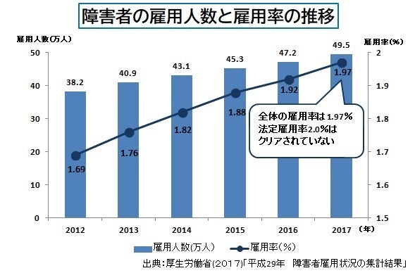 2017年(平成29年)6月時点で、民間企業に雇用されている障害者の数は495,795人。